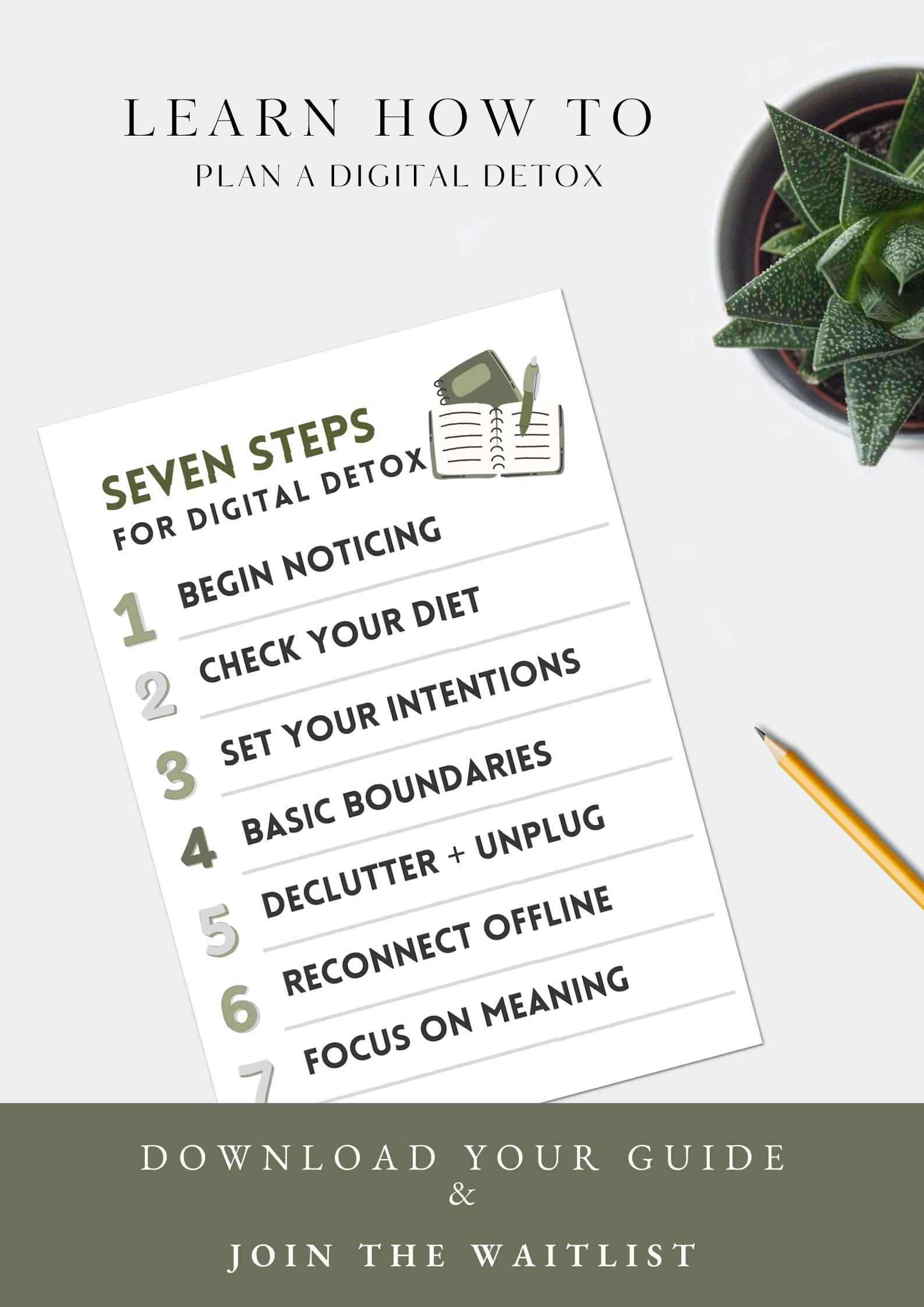 In today's hyper-connected world, screens dominate almost all elements of our days. Reclaiming your mental clarity and taking intentional steps daily to protect and maintain your wellbeing has never been more essential. This free email course walks you through 7 steps to detox from your phone and other tech and is a fun and practical starting point!